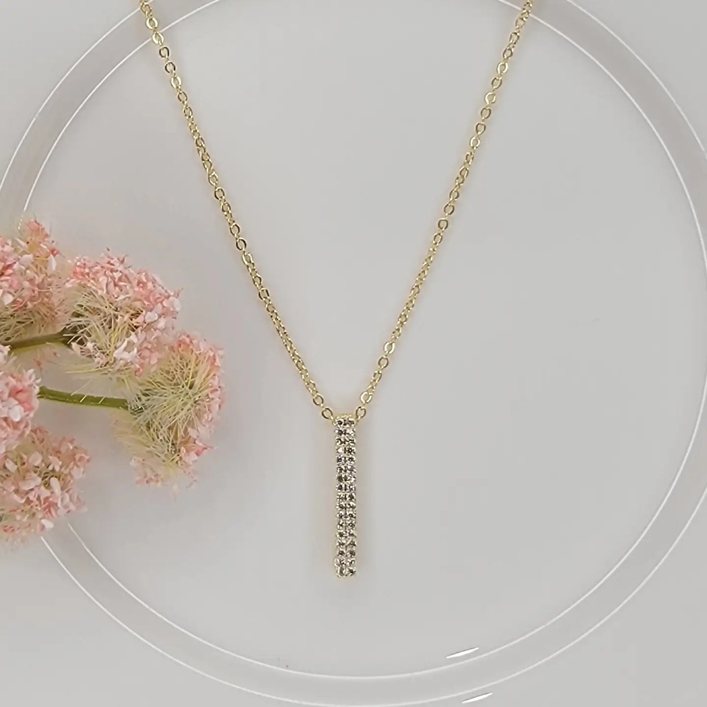 Elevate your everyday style with this sleek vertical bar pendant necklace, this minimalist piece delivers maximum sparkle without the price tag. The delicate 3/4" pendant hangs perfectly on an 18 1/2" chain, creating an effortless layering essential or standalone statement. Lead and nickel-free construction. Whether you're dressing up or keeping it casual, this versatile necklace adds just the right touch of sophistication to any look.