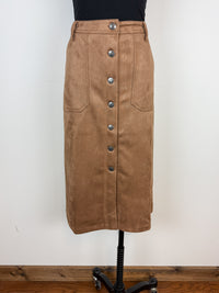 The Hallie Skirt in Caramel is your new fall favorite! Crafted from soft suede, this playful skirt features a button-down front and convenient pockets for a touch of practical charm. Its warm caramel hue brings cozy vibes, making it irresistibly cute for autumn adventures and everyday wear.