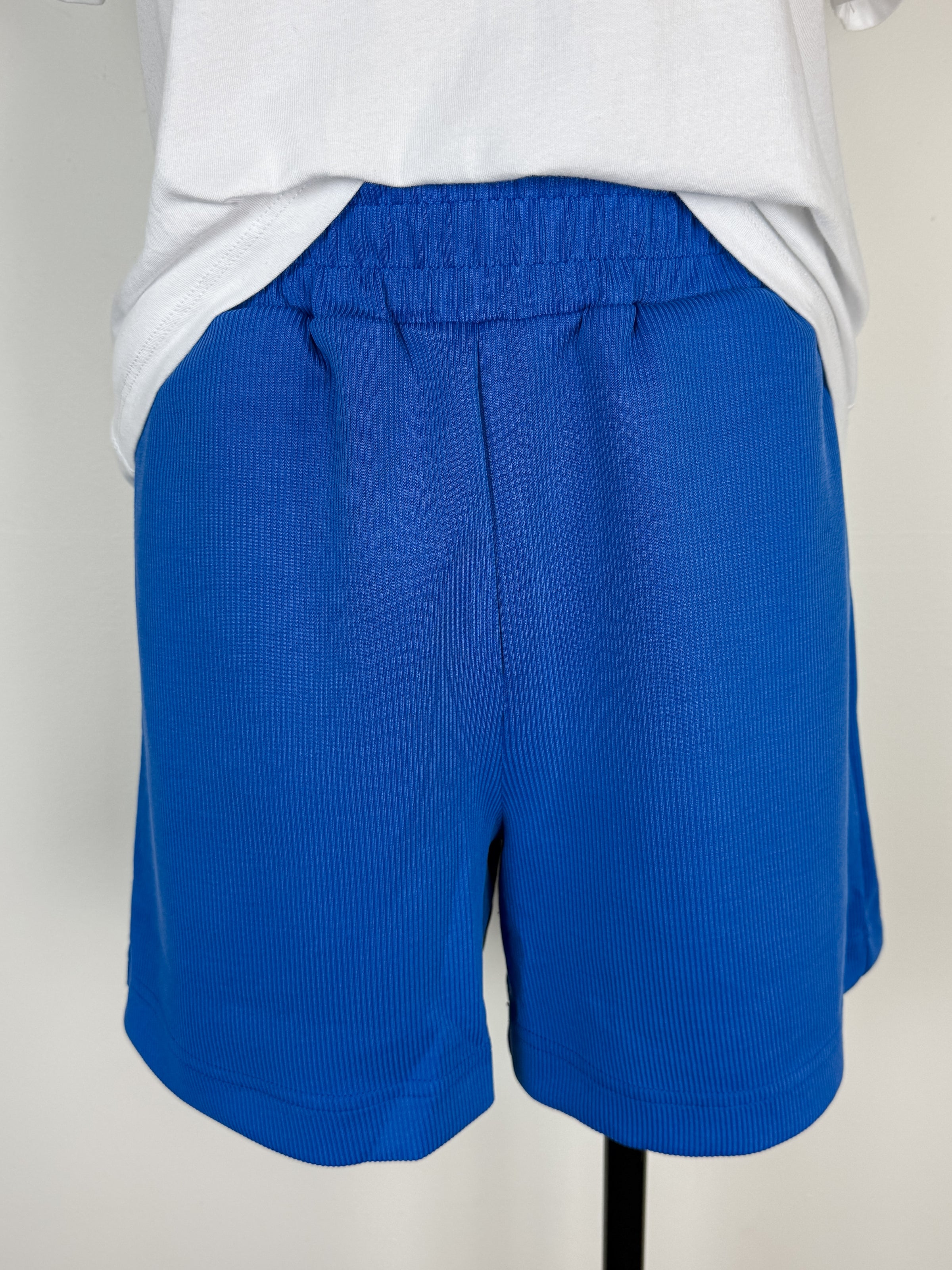 Slip into effortless style with the Dani Ribbed Short in Blue. Featuring a flattering ribbed texture, functional front pocket, and relaxed elastic waist, this sand-washed essential delivers all-day comfort without compromising on looks. Perfect for lounging, running errands, or casual outings—it's the cute, cozy piece you'll reach for again and again.