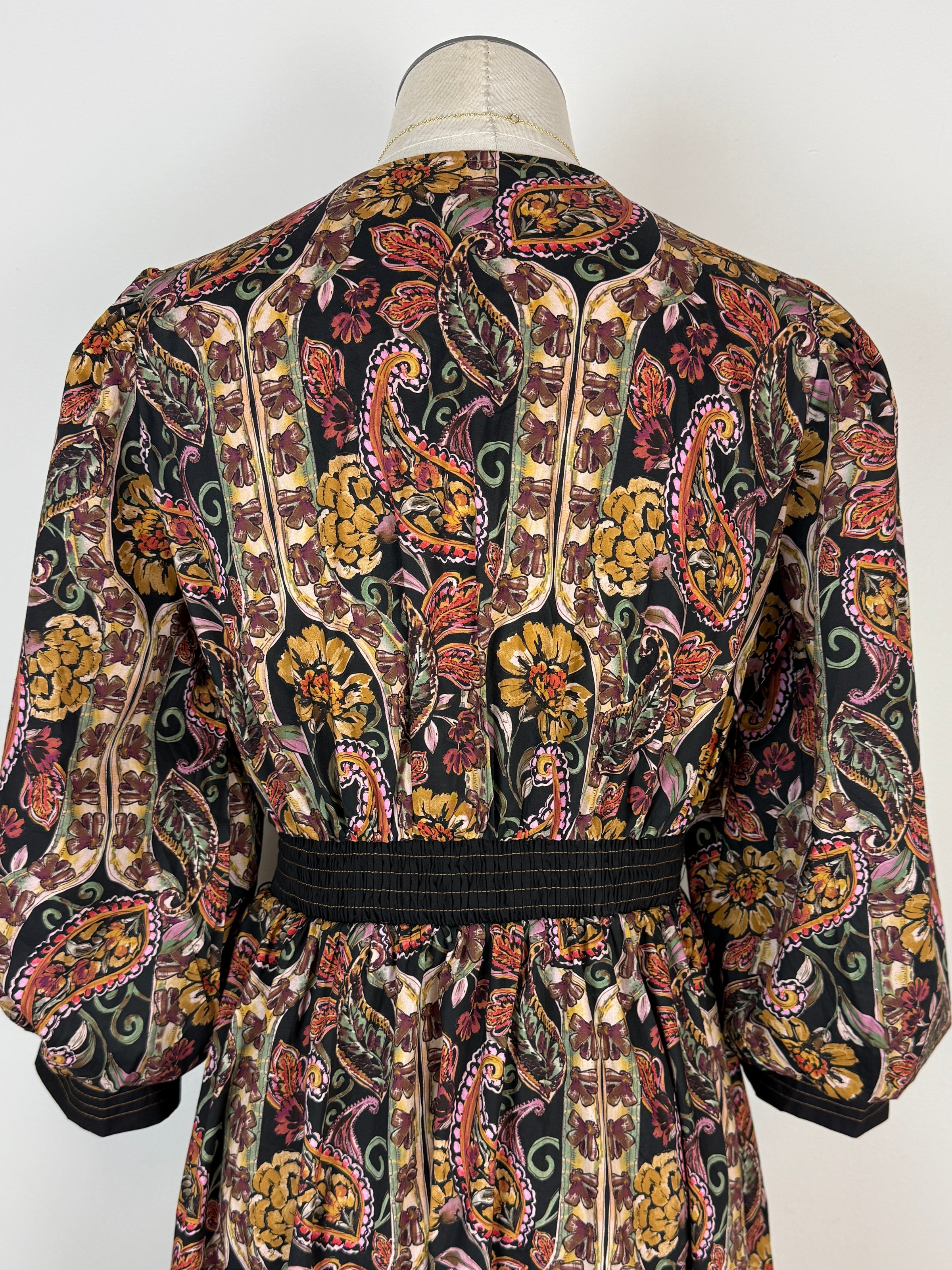 Meet the Kara Printed Midi Dress—your new go-to for effortless style with personality. This playful number features a fun paisley print paired with charming puff sleeves and striped trim accents. The partial front zipper gives you easy on-and-off convenience, while practical side pockets keep your hands free. Crafted from lightweight woven fabric and fully lined, this dress is comfortable enough for all-day wear. Perfect for casual outings, weekend adventures, or whenever you want to look put-together without trying too hard.