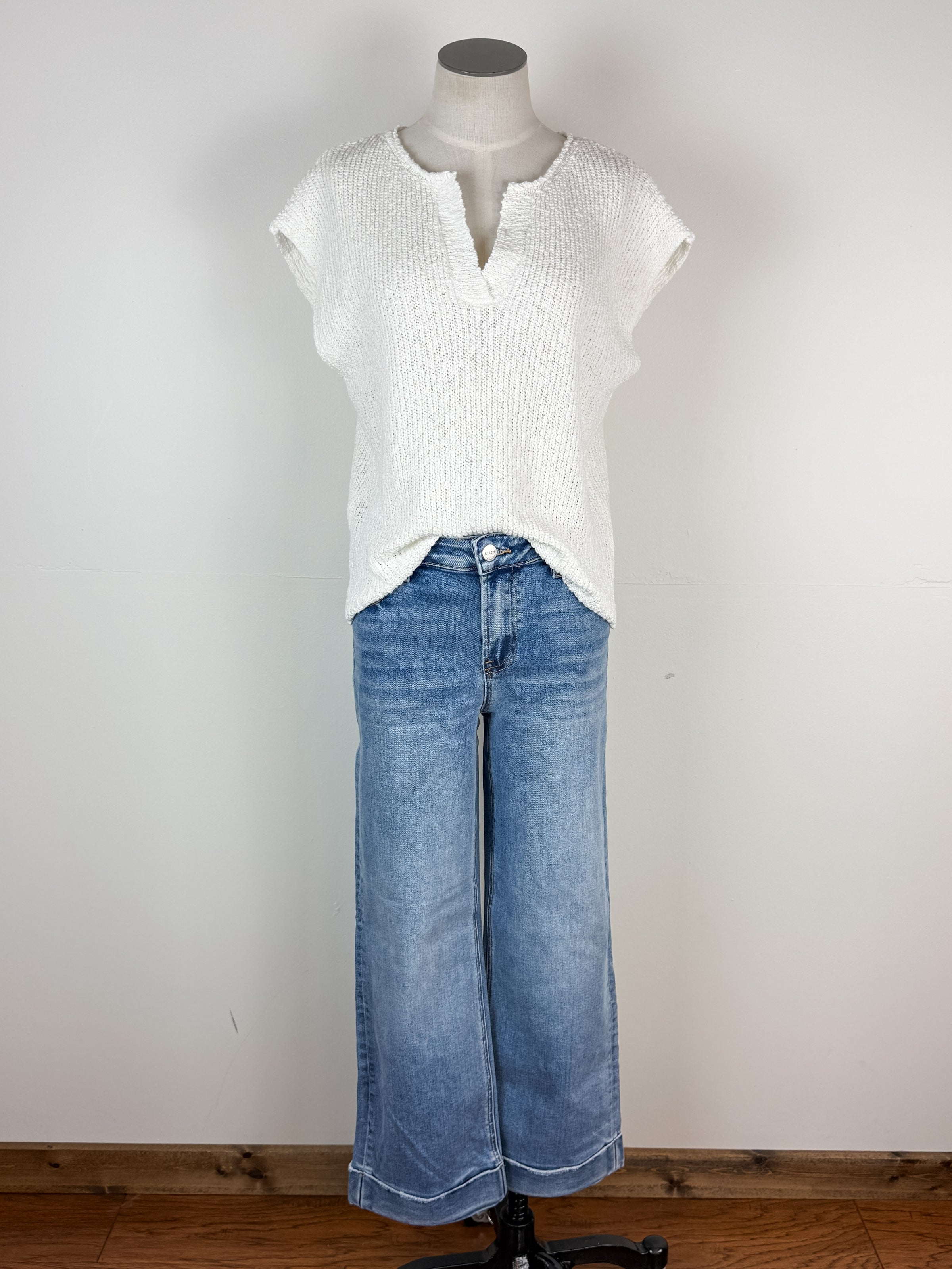 The Vivian Short Sleeve Sweater delivers effortless style in lightweight slub cotton. Its split neckline and short sleeves make it the perfect versatile piece for layering or wearing alone. Comfortable, flattering, and ready for anything.