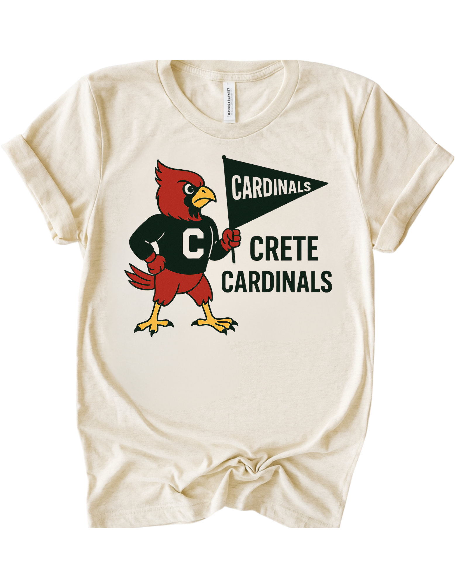 Crete Cardinals Vintage Mascot Tee & Sweatshirt