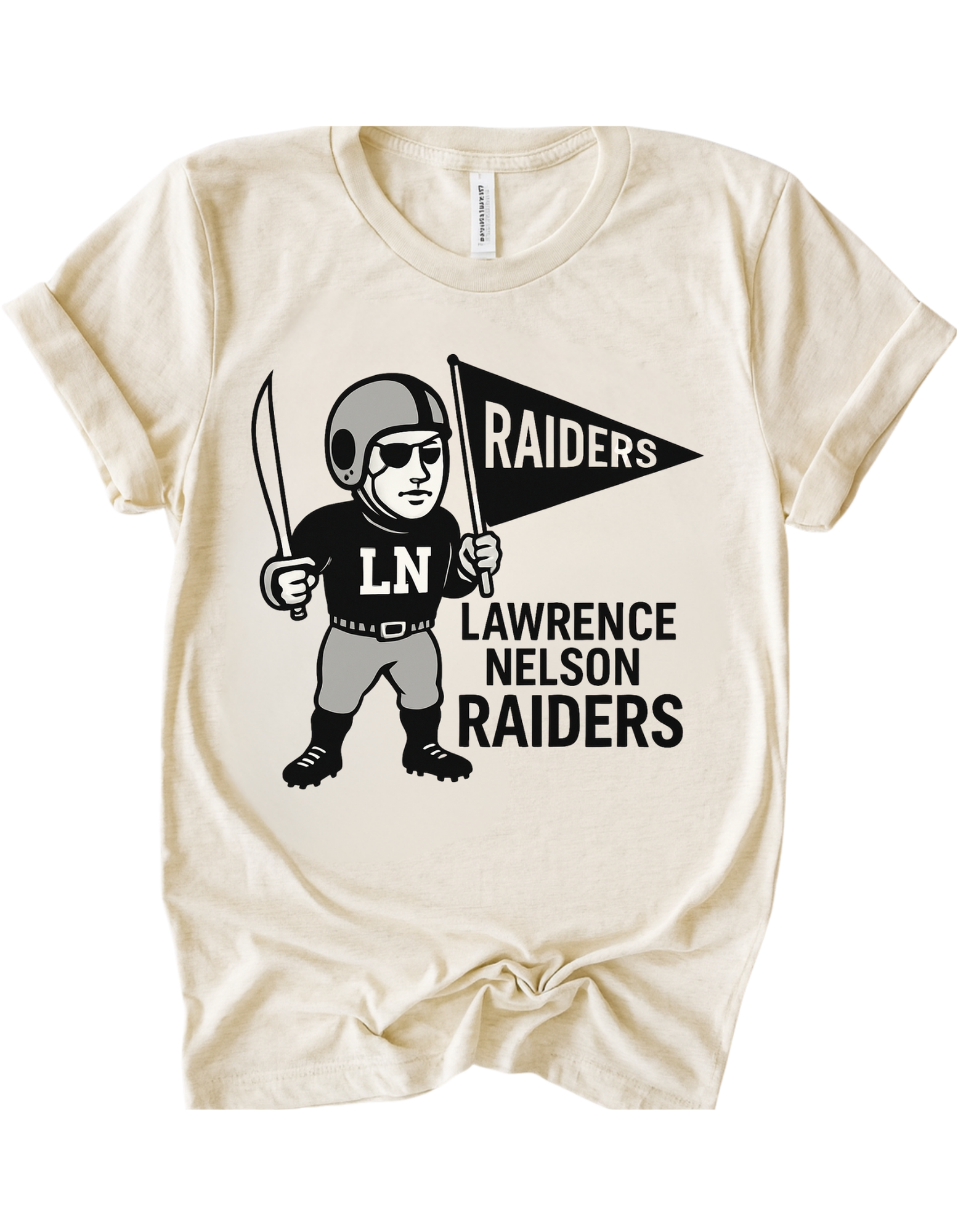 Lawrence Nelson Raiders Vintage Mascot Tee & Sweatshirt