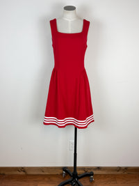 Bring fun and flair to your look with the Eliana Game Day Dress in Red. This playful skater dress features a cozy knit fabric and eye-catching contrast details that add a pop of personality. Its sleeveless design and square neckline keep things fresh and flirty, perfect for cheering on your team or making a statement wherever you go. Easy to move in and effortlessly stylish, it’s your new go-to for game day and beyond.