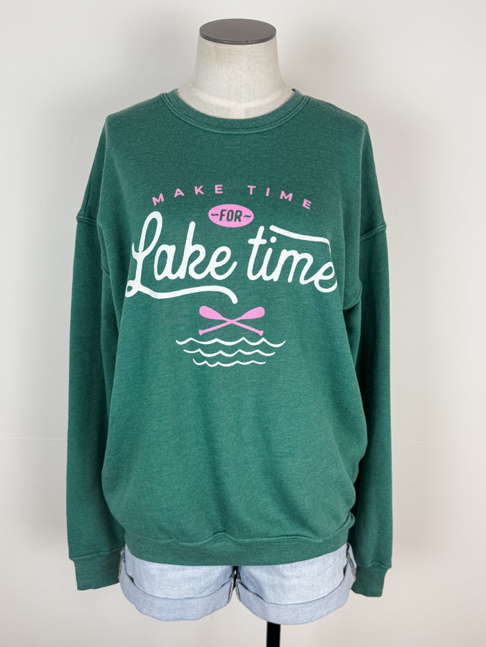 Make Time for Lake Time Mineral Wash Sweatshirt in Dusty Green