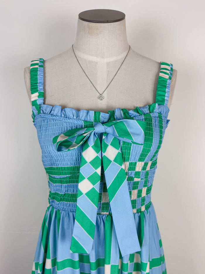 Finley Plaid Tiered Maxi Dress in Green/Blue