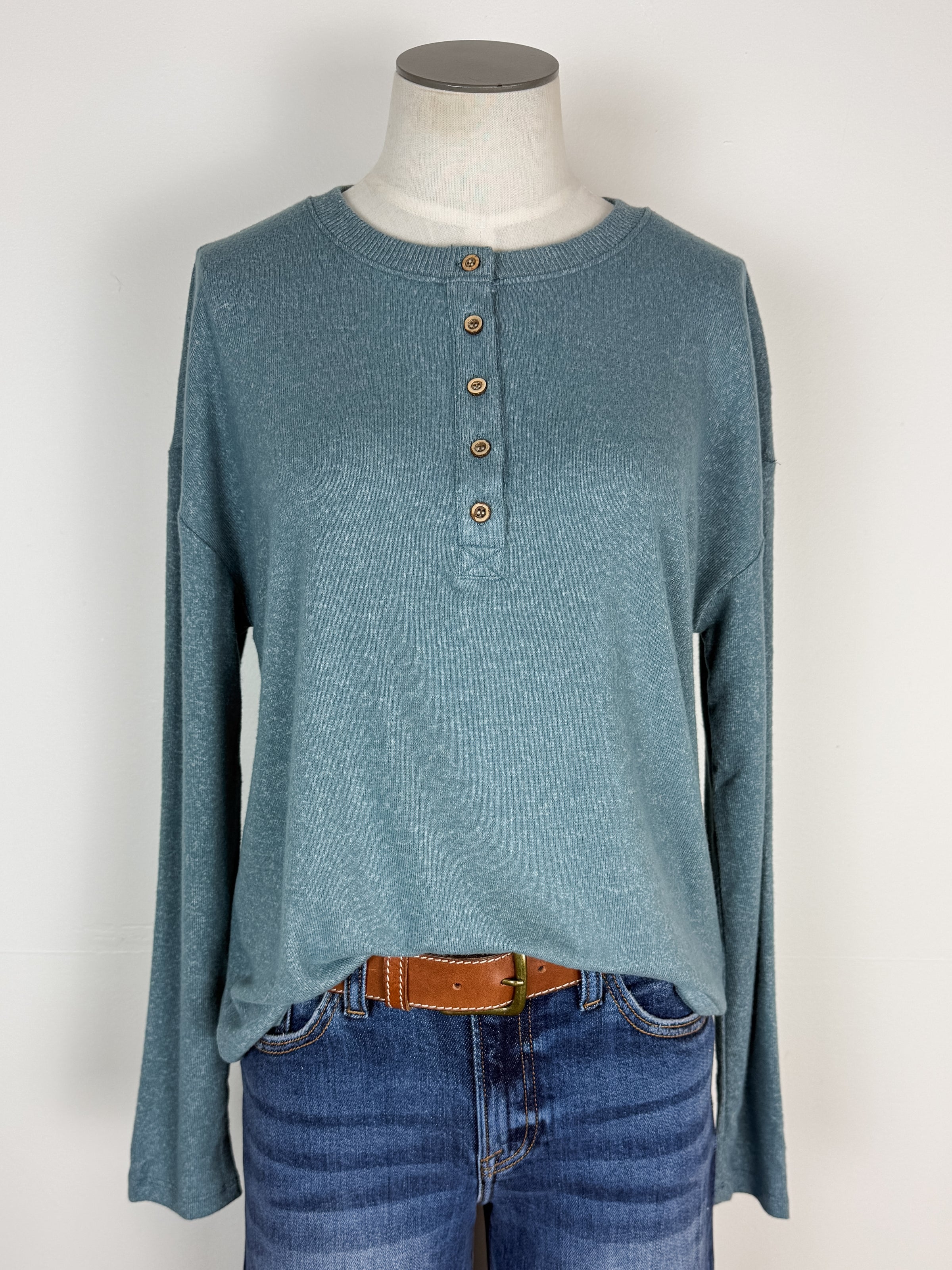 Meet your new favorite layer. The Emilia Henley Top in Teal combines lightweight comfort with timeless style in one adorable package. Long sleeves, flattering fit, and that effortless cute factor make this henley the piece you'll reach for again and again.