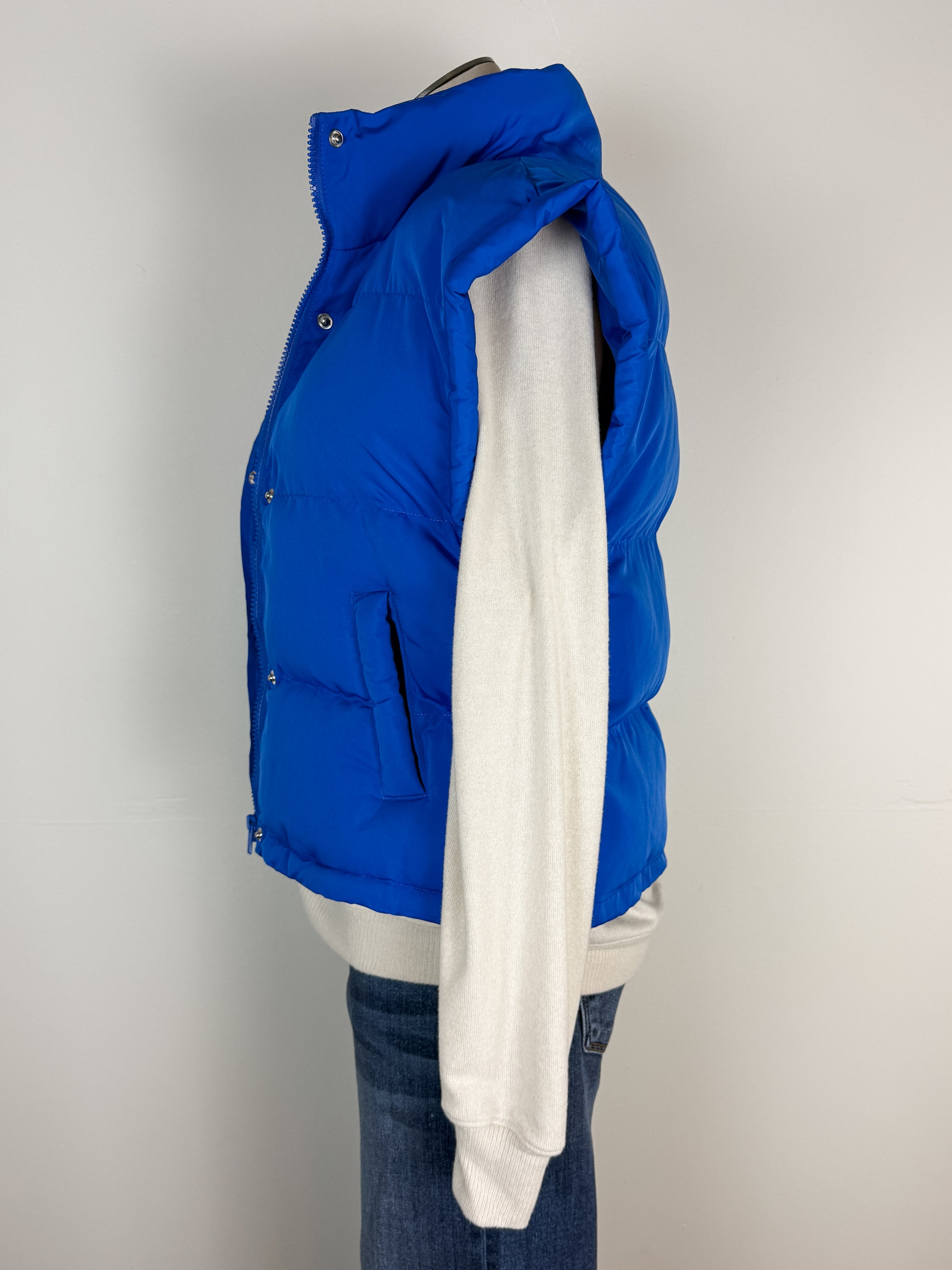 The Karlie Puffer Vest in Royal Blue keeps you warm with lightweight insulation and a sharp look. Zip it up for quick layering, and use the practical pockets to carry what you need. Perfect for any season.