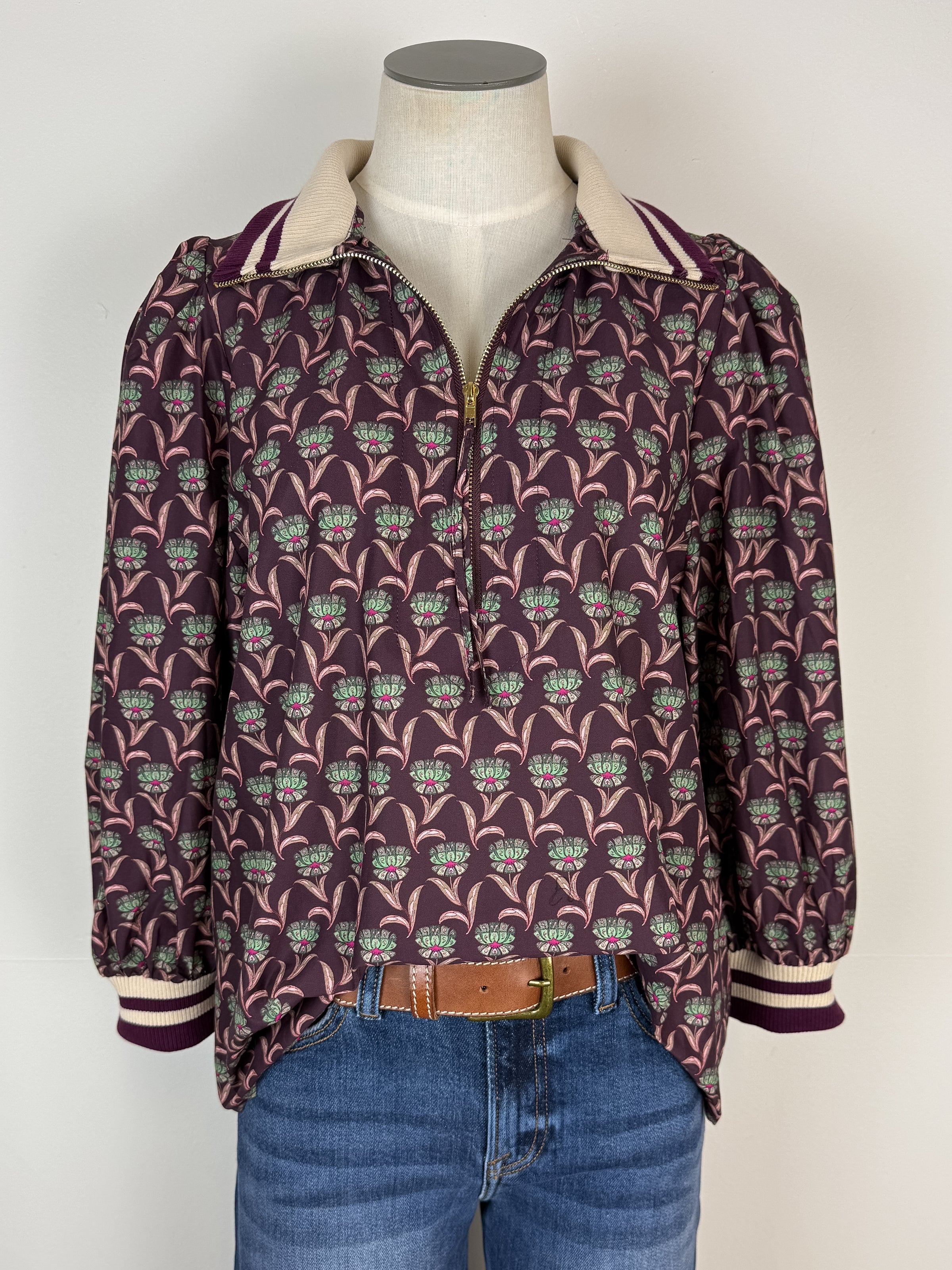 Kiara 1/4 Zip Collared Blouse in Merlot