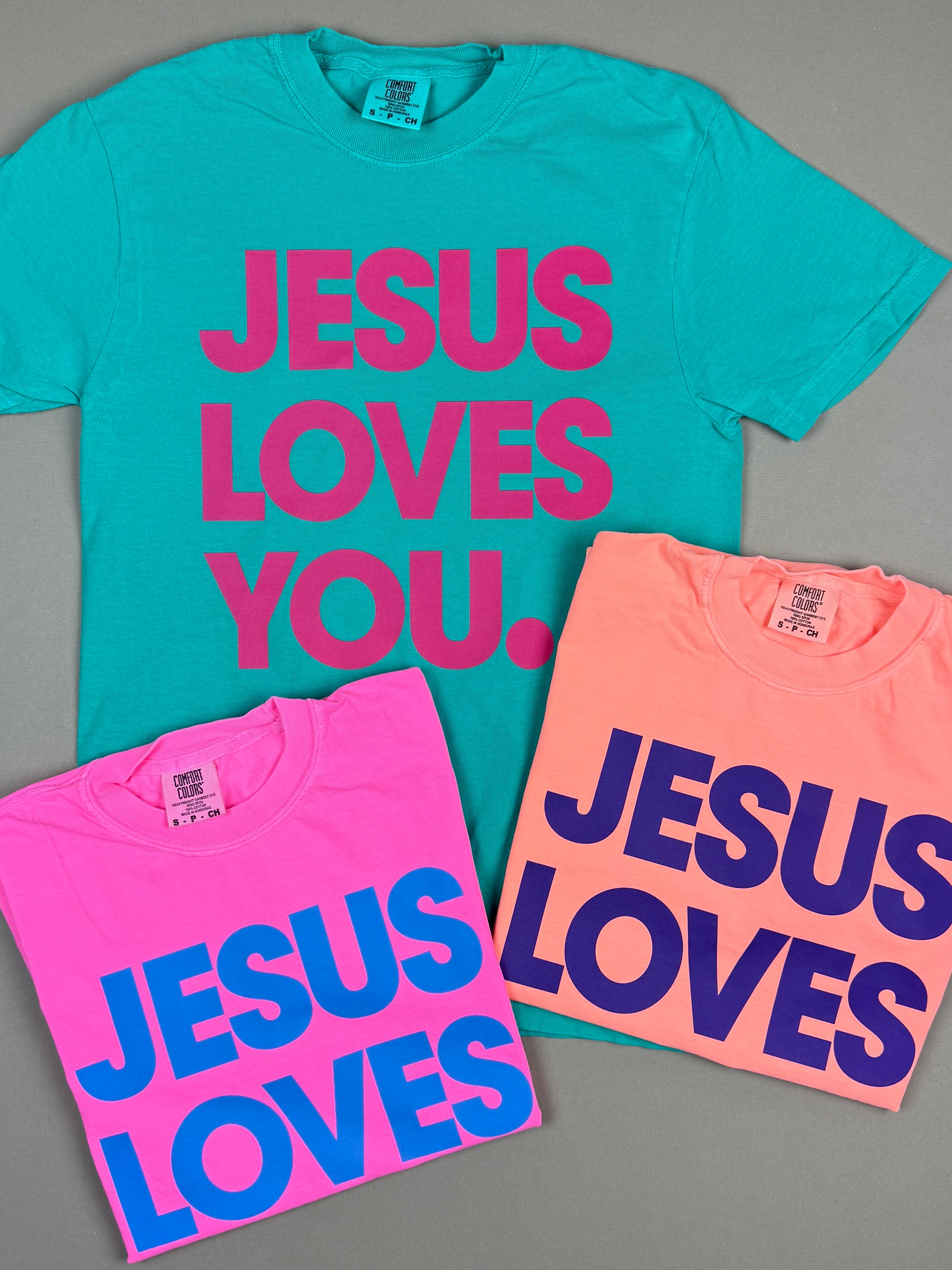 Wear your faith boldly in this Jesus Loves You Tee. Vibrant colors and comfortable fit make it perfect for everyday wear. A stylish way to share what you believe.