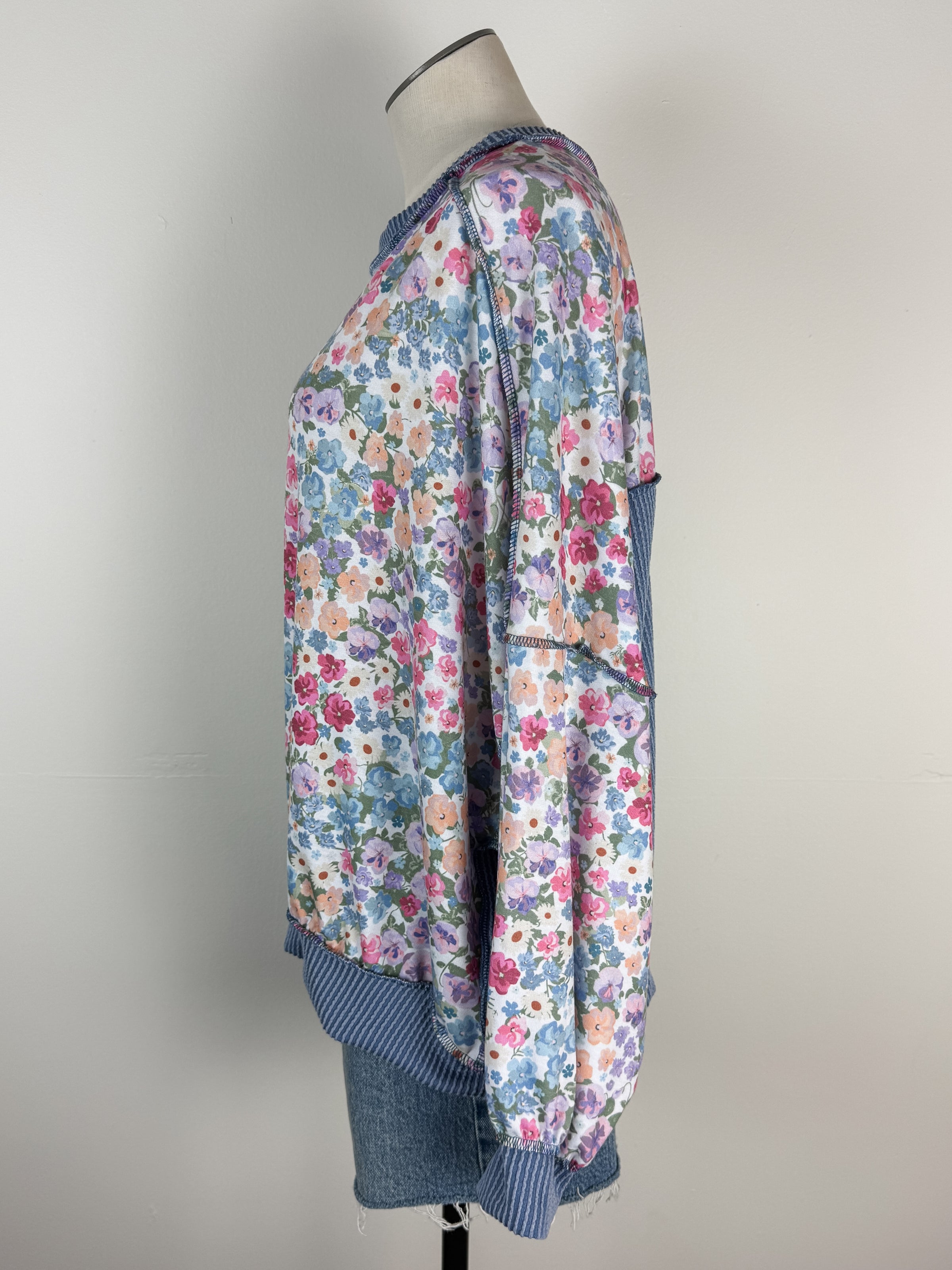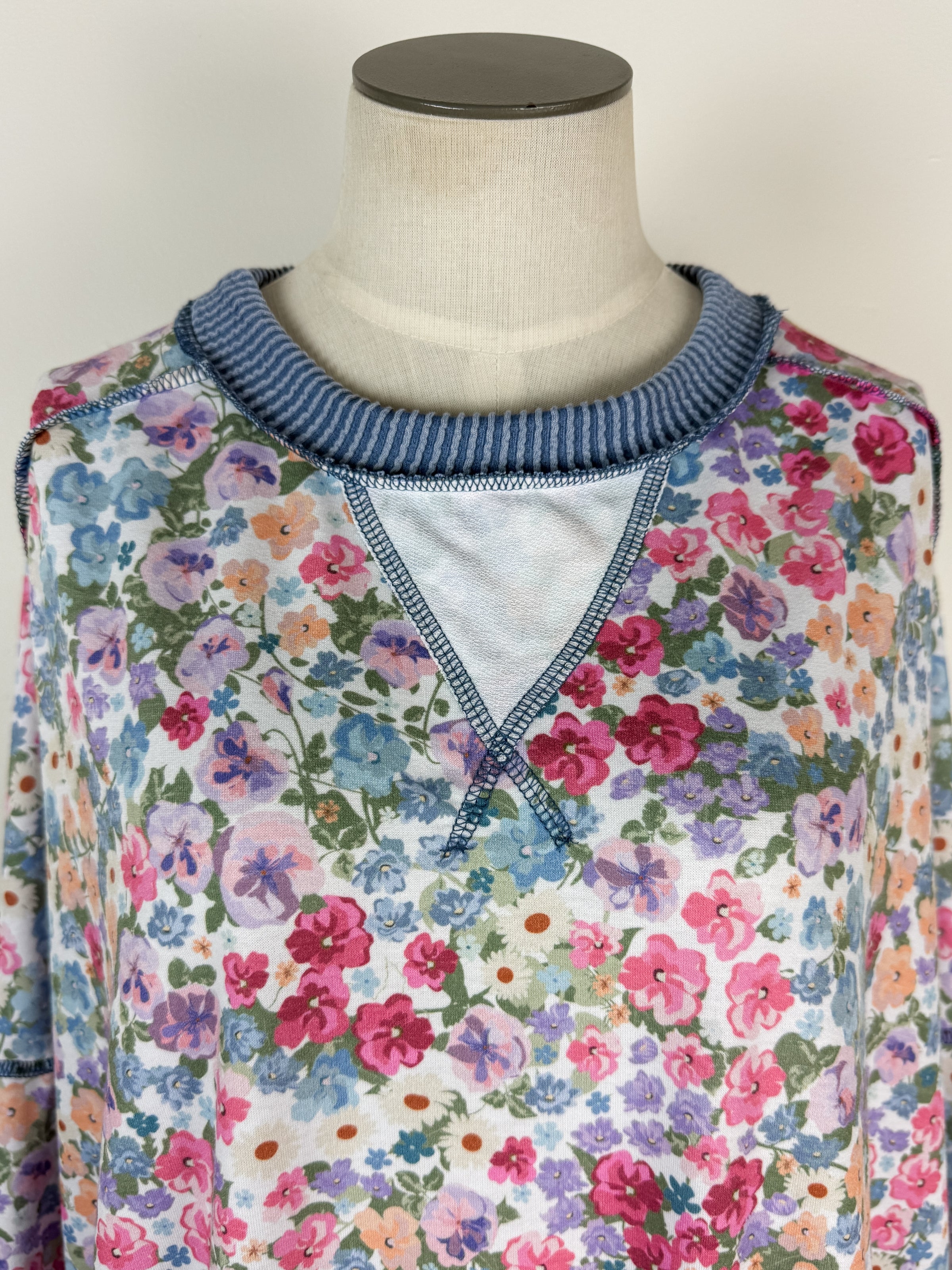 Effortlessly chic and undeniably comfortable, the Jill Floral Top features a charming denim and ivory floral print. The relaxed drop shoulder silhouette and loose fit create an easy, laid-back vibe perfect for casual days, while the long sleeves add versatility for any season. Crafted by Haptics, this crew neck essential pairs beautifully with jeans, skirts, or loungewear for a look that feels as good as it looks.