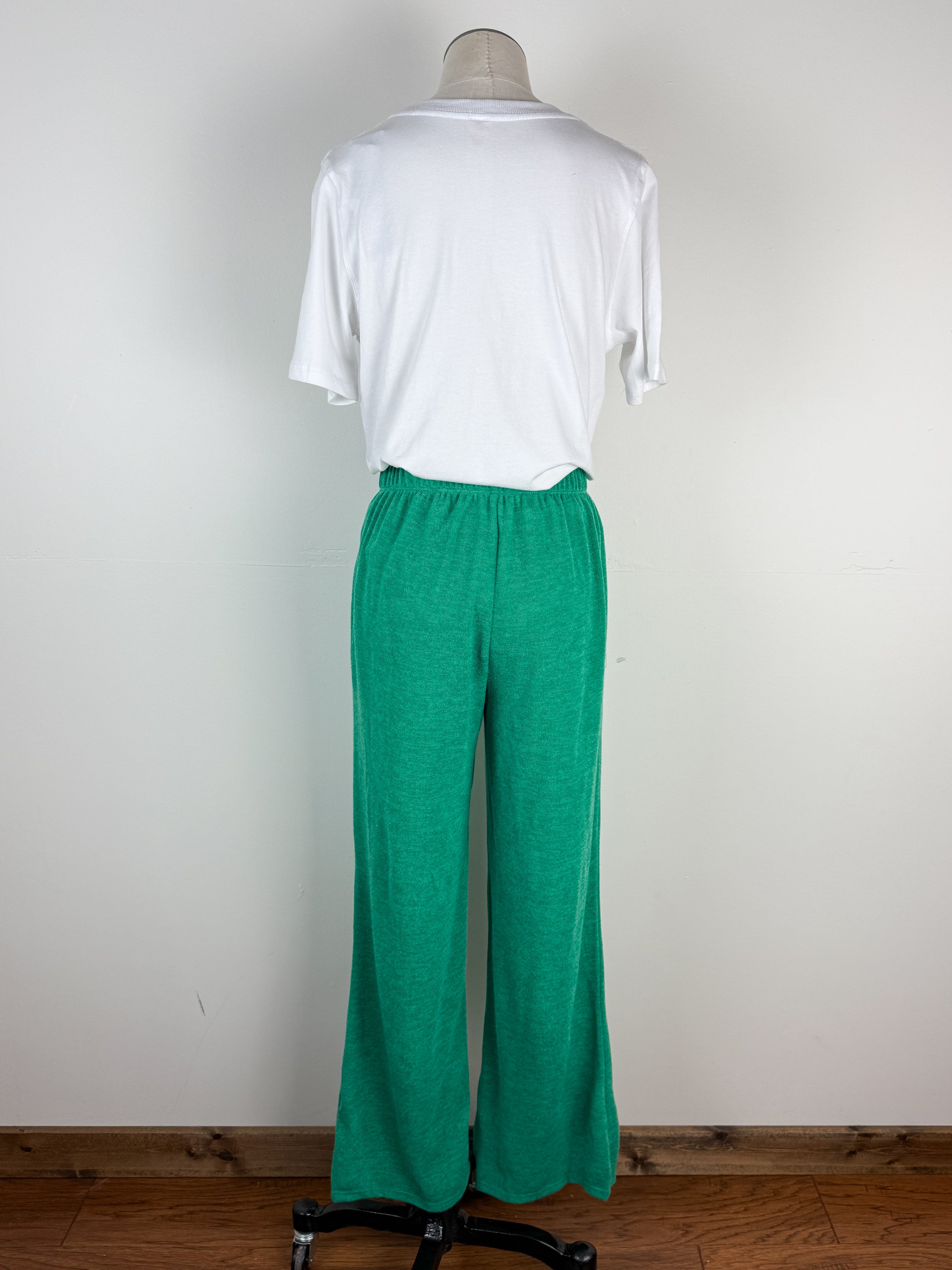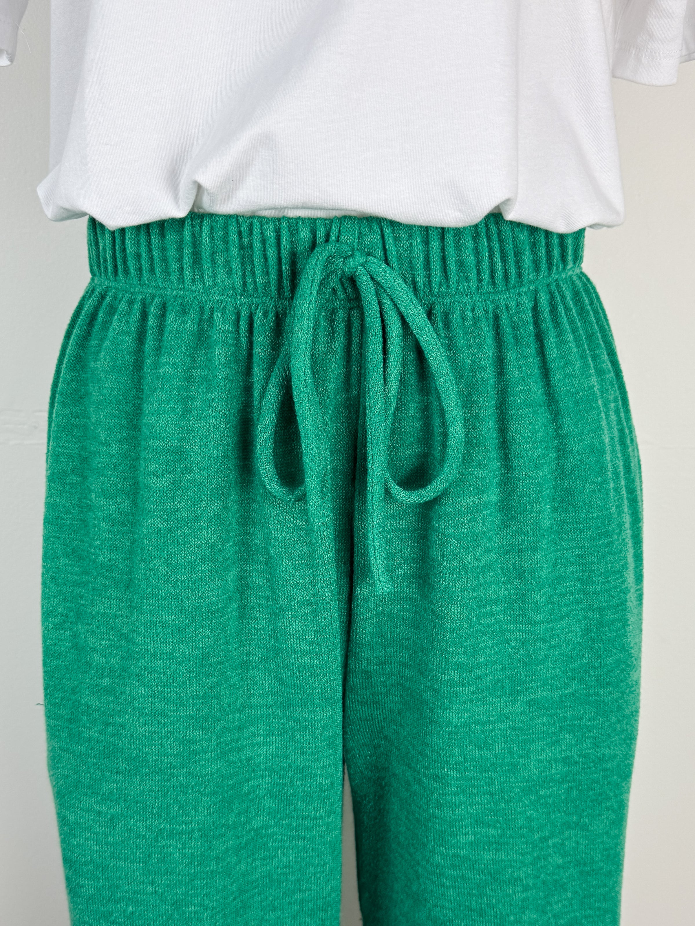 Slip into effortless comfort with the Leah High Waist Pant in Green. Designed with a soft, breathable fabric and an elastic waist with drawstring for a customizable fit, these pants move with you throughout your day. Functional pockets keep your essentials within reach, while the high-waisted silhouette offers flattering coverage. Perfect for relaxed weekends or casual everyday wear.