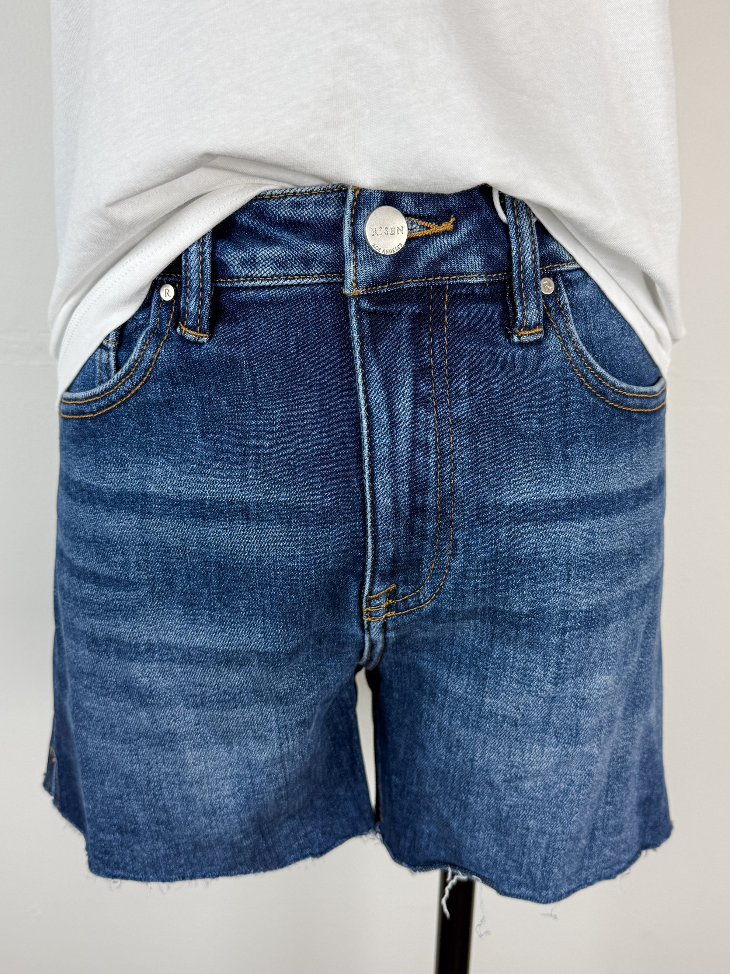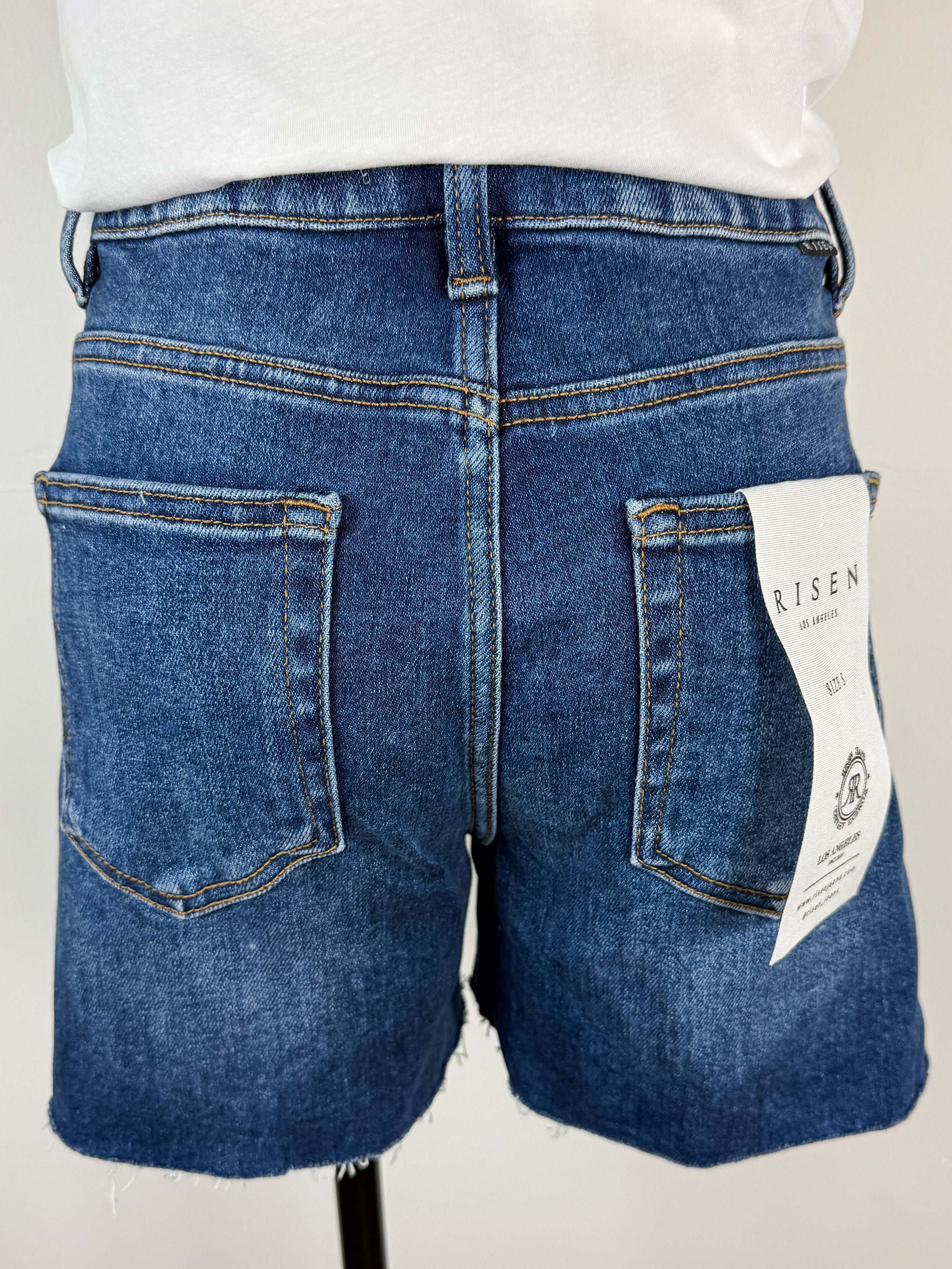 Experience effortless summer style with the Risen Emery High Rise Short. Crafted from stretch denim, these shorts offer a flattering high-rise fit that enhances your silhouette. The raw hem and small side slit add a trendy, laid-back edge perfect for warm days. Comfortable and stylish, they’re your go-to for casual outings or weekend adventures.